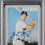 Auction officials say the ’68 jersey has been photo-matched with multiple images including the one shown at right. A Cubbie Bear patch appears on the left sleeve and a special “1818 Illinois Sesquicentennial 1968” patch from that season celebrating the state’s 150th year in existence remains on the right sleeve. Unlike what was common practice of the day, the jersey was never recycled with the Cubs’ minor leagues affiliates.