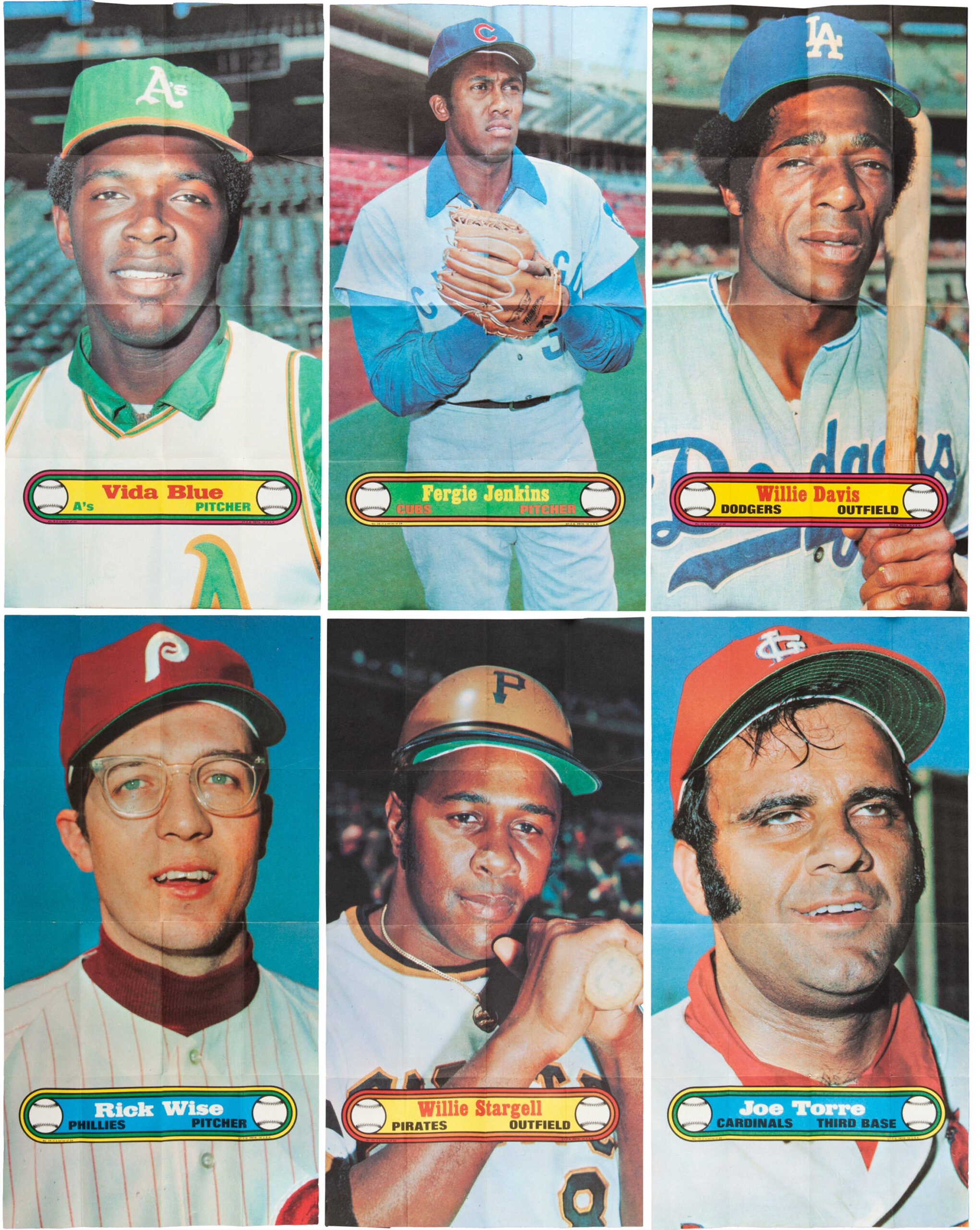 Like all Topps poster sets, the 1972s are printed on thin paper stock and finding those that don’t have at least a small tear or two is hard. Topps opted to keep packs small, which means each one has no less than 16 folds.