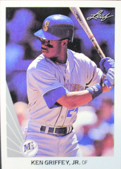 Another interesting fact is that there are no insert sets in this super premium Leaf offering. There was a 12 card preview set released to try and get the ball rolling and stir up some excitement for the product prior to it release. These cards have the words ‘Special Preview Card’ written across the card backs. The checklist includes Griffey Jr., and still retain collector interest today.