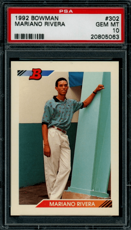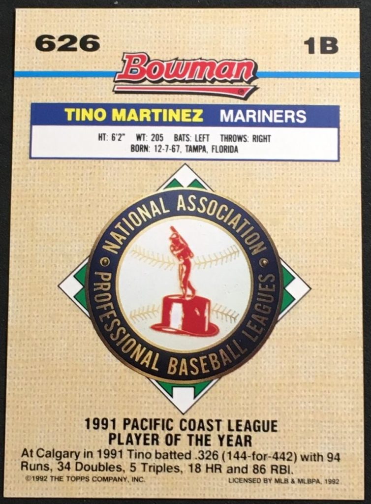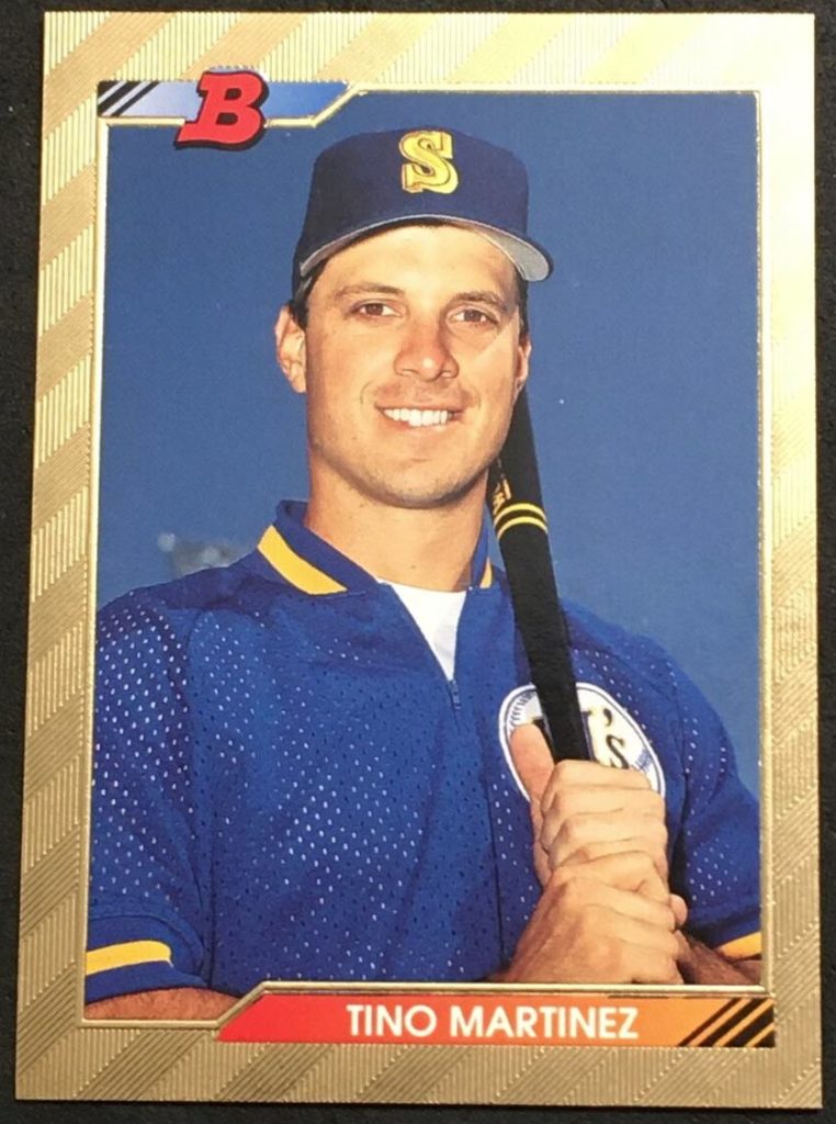 At the top of the 150-plus players in the ’92 Bowman rookie crop you will find New York Yankees reliever Mariano Rivera. The Baseball Hall of Fame’s first unanimous selection and quite possibly the greatest closer in the history of the sport, coupled with the fact that he spent his entire career in Yankees pinstripes, puts his card firmly at the top of the heap in this particular set. The one odd, but in hindsight, maybe one of the more endearing features was that the first cards of Rivera and others show them in street clothes.