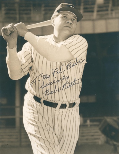 “To My ‘Pal’ Babe” is the inscription on the photograph. The image also carries a letter of provenance from the Herman estate and a letter of authenticity from JSA.