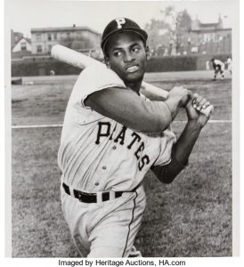 Other key auction items include a 1949 original news photograph of Jackie Robinson, which was the model for his 1950 Bowman baseball card; and a 1955 news photograph of Pittsburgh Pirates rookie Roberto Clemente.