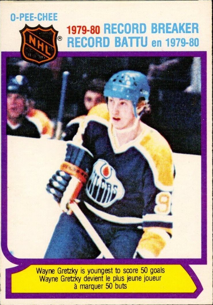 A gap like that might seem impossible for most players, but Gretzky made closing it a reality. On March 26, he posted two assists against Detroit before scoring twice and adding four assists against Toronto three days later. On April 1, the Canucks held him scoreless before he followed up the day after with his 50th goal of the season while battling the Minnesota North Stars – becoming the youngest player in NHL history to accomplish the feat (later broken). The feat is commemorated on a 1980-81 O-Pee-Chee card.