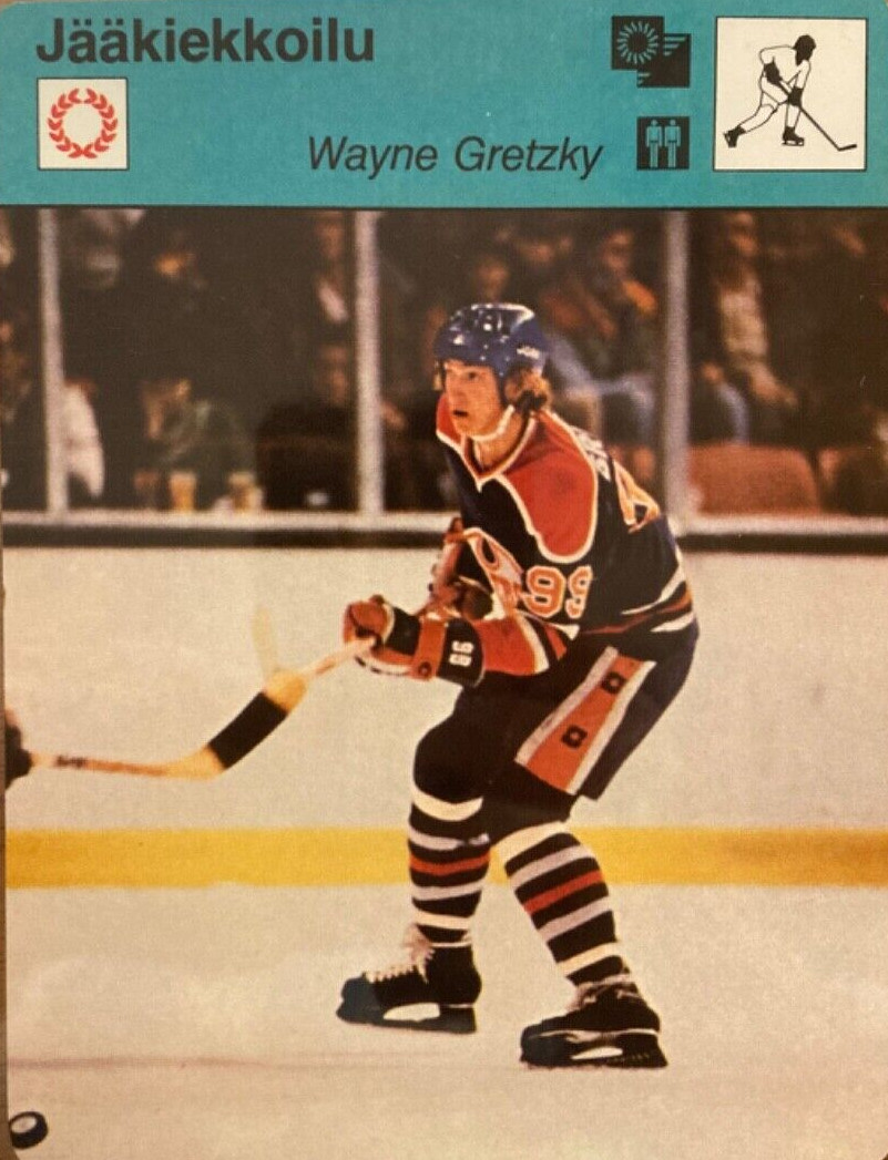 In addition to Gretzky’s rookie card, collectors can also consider his vastly underrated team issued postcard from 1979-80. Postcards never seem to get enough love from the hobby and it’s a much cheaper alternative to the far pricier O-Pee-Chee and Topps cards. In this period, there was also an oversized Sportscaster card which has four known English variations based on their print run. A fifth version has Finnish text.