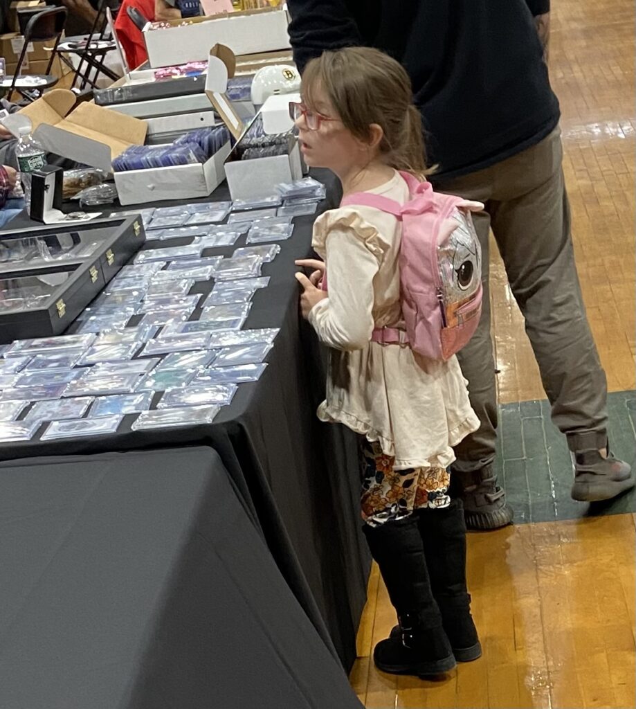 I’m happy to report I saw hundreds of elementary and middle school age kids at the show. There were also teenagers carrying cases packed with modern cards and wielding wads of cash. There were women dealers and women collectors, too.