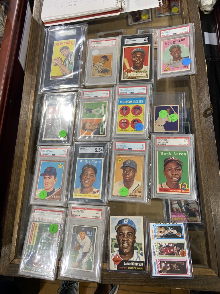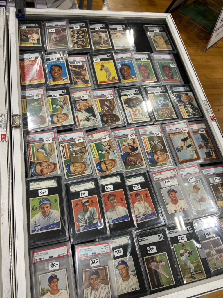 The stacks of cards, raw and graded, grew higher and higher. Pretty soon, the dealer’s case was cleaned out.