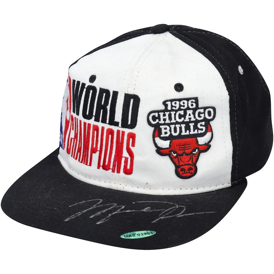 A relic from the 1990s brings fashion together with the NBA’s biggest icon: an autographed Michael Jordan Starter 1996 NBA Champions Snapback adjustable hat.
