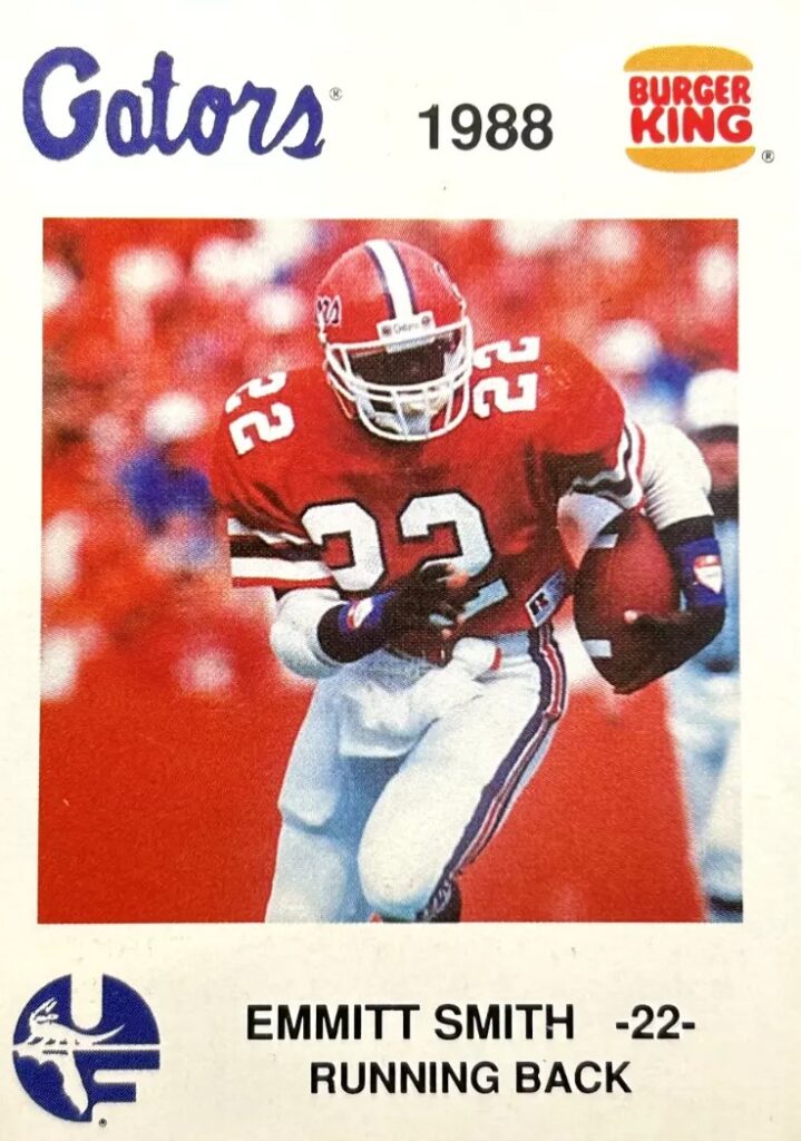 In 1988, Smith was included in a special Burger King set for the Gators. His appearance in that limited set was not a surprise, even though he was only a sophomore at the time. In 1987 as a freshman, Smith’s 1,341 rushing yards led the SEC. The Burger King card is believed to be his first true trading card.