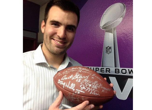 It does mean you get to do cool things like sign a football filled with nothing but autographs from Super Bowl MVPs (see left).