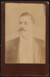 The fourth cabinet, shown here, also pictures Sullivan in plain clothes and includes a 3/4 body pose. While similar to these cabinets, some might be inclined to leave it out of this series as the fonts used on this card differ from the others. On the three cards above, Sullivan’s name is printed in all capital letters while the Champion of the World title is in mixed capital/lowercase. This fourth card has the font in the opposite manner and are a different type.