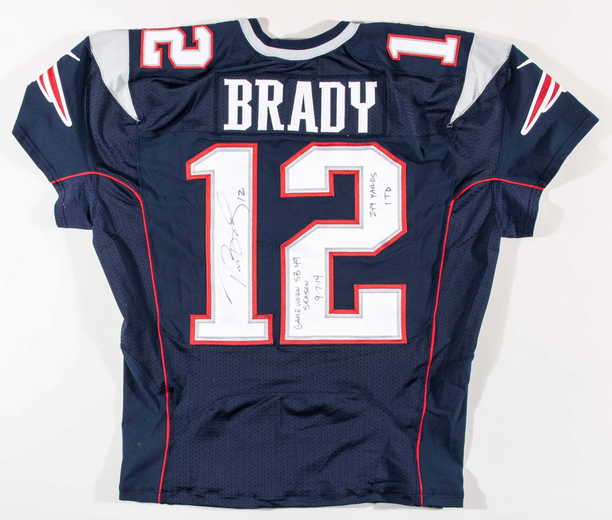 The Patriots jersey was photomatched by MeiGray to the Sept. 7 season opening game against the Dolphins. Brady would go on to win his fourth of seven Super Bowl titles that season.