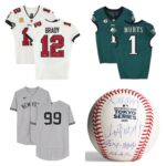 A 2014 autographed game-worn Tom Brady jersey tied the Unitas Super Bowl ring at the top of the results, bringing $258,500.