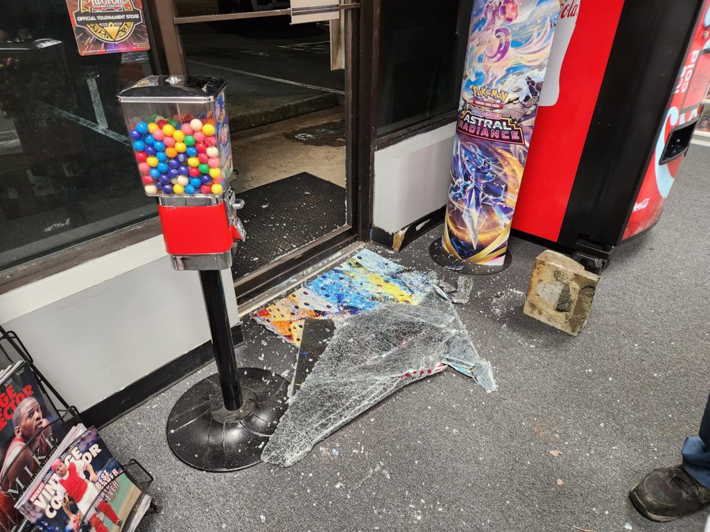 It happened at Grand Slam Sports Cards on Feb. 1. The store’s front door was smashed open and while police arrived on scene, those responsible had left the area.