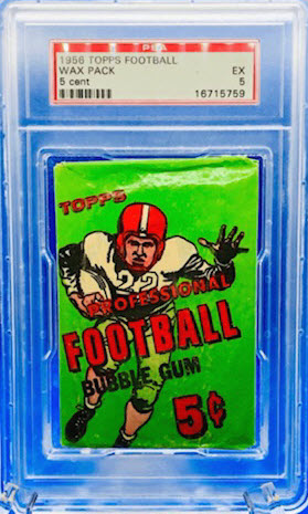 Of the 120 cards in the 1956 Topps football set, 26 are Hall of Famers. There are also 19 short prints. Some cards in the set have proven very difficult or impossible to find in high grade. Have any inside the pack survived in top condition? We’ll find out.