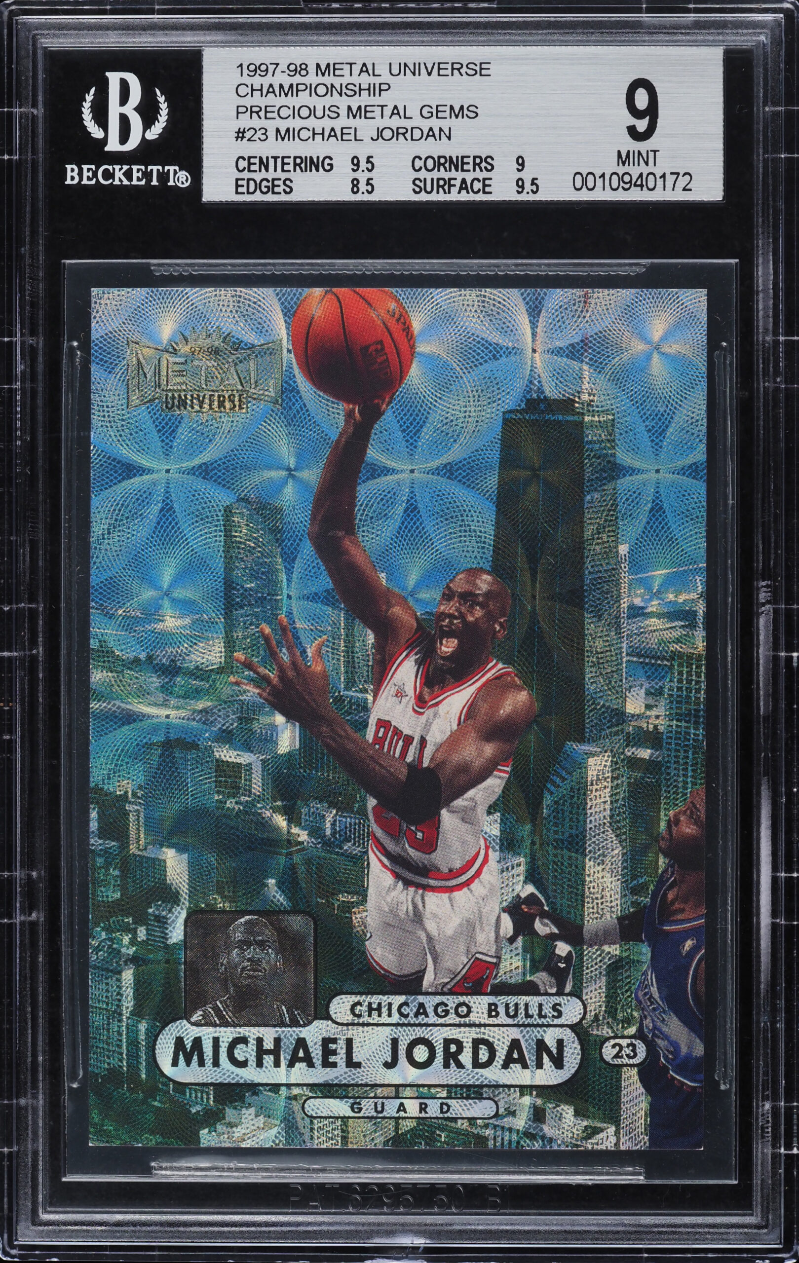A 1997 Metal Universe Championship Precious Metal Gems Jordan numbered to 50 and graded Mint 9 by Beckett topped bidding in the final PWCC Marketplace Premier Auction of 2023.