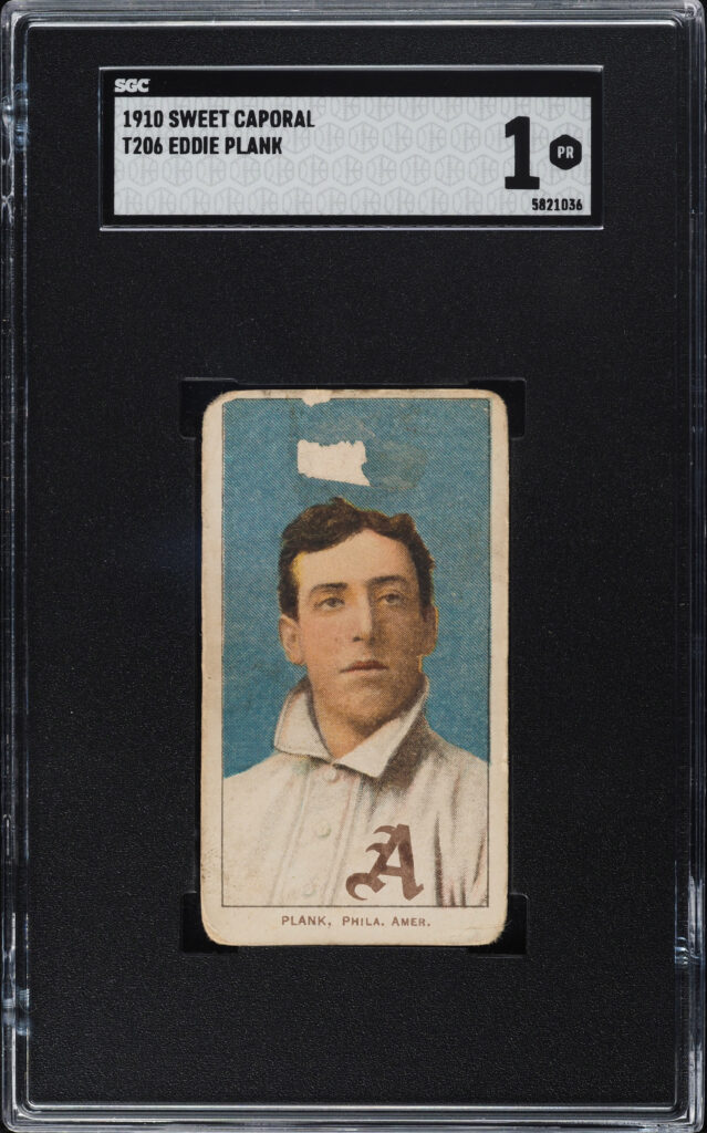 One of the T206 set’s “big four,” a T206 Eddie Plank graded SGC 1, netted $45,600.