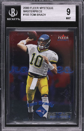 A 2000 Fleer Mystique Masterpiece Tom Brady rookie 1/1 graded BGS 9 was also among the big attractions. It netted $180,000.