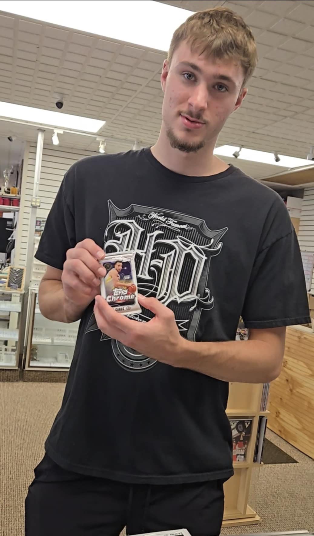 While checking things out, he ripped a box of 2024-25 Topps Chrome Basketball.