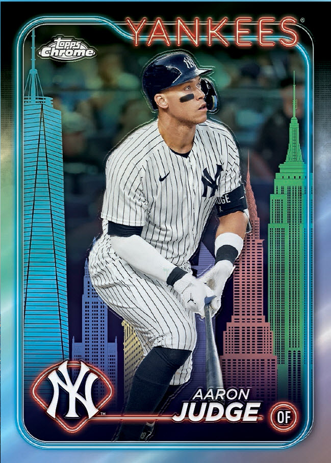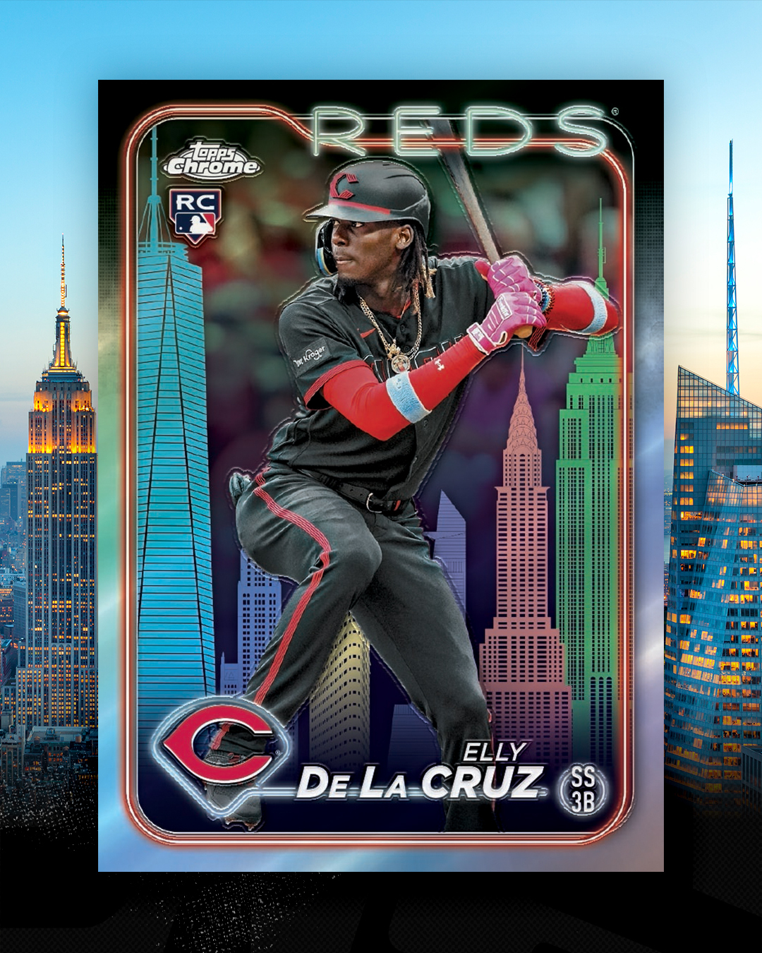 The boxes will include “Big Apple Refractors” cards, with the print run for each card limited to less than 50. The background of each card features the city skyline.