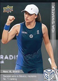 Upper Deck is releasing Świątek’s first-ever Upper Deck trading card, a Game Dated Moment from her most recent WTA Championship win. Under the agreement, Upper Deck will be producing collectibles featuring Świątek’s image and autograph.