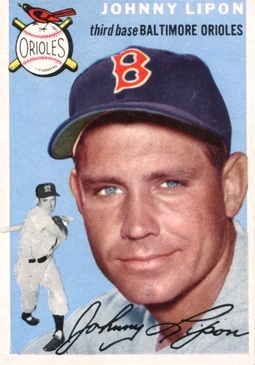 Mention the 1954 Topps baseball set and there are many cards that come to mind. Maybe it’s the trio of Hall of Fame rookie cards of Hank Aaron, Ernie Banks, and Al Kaline. Or maybe it’s the cards of veterans, such as Ted Williams, Willie Mays, and Jackie Robinson. But one that isn’t likely to come up is the card of Johnny Lipon.